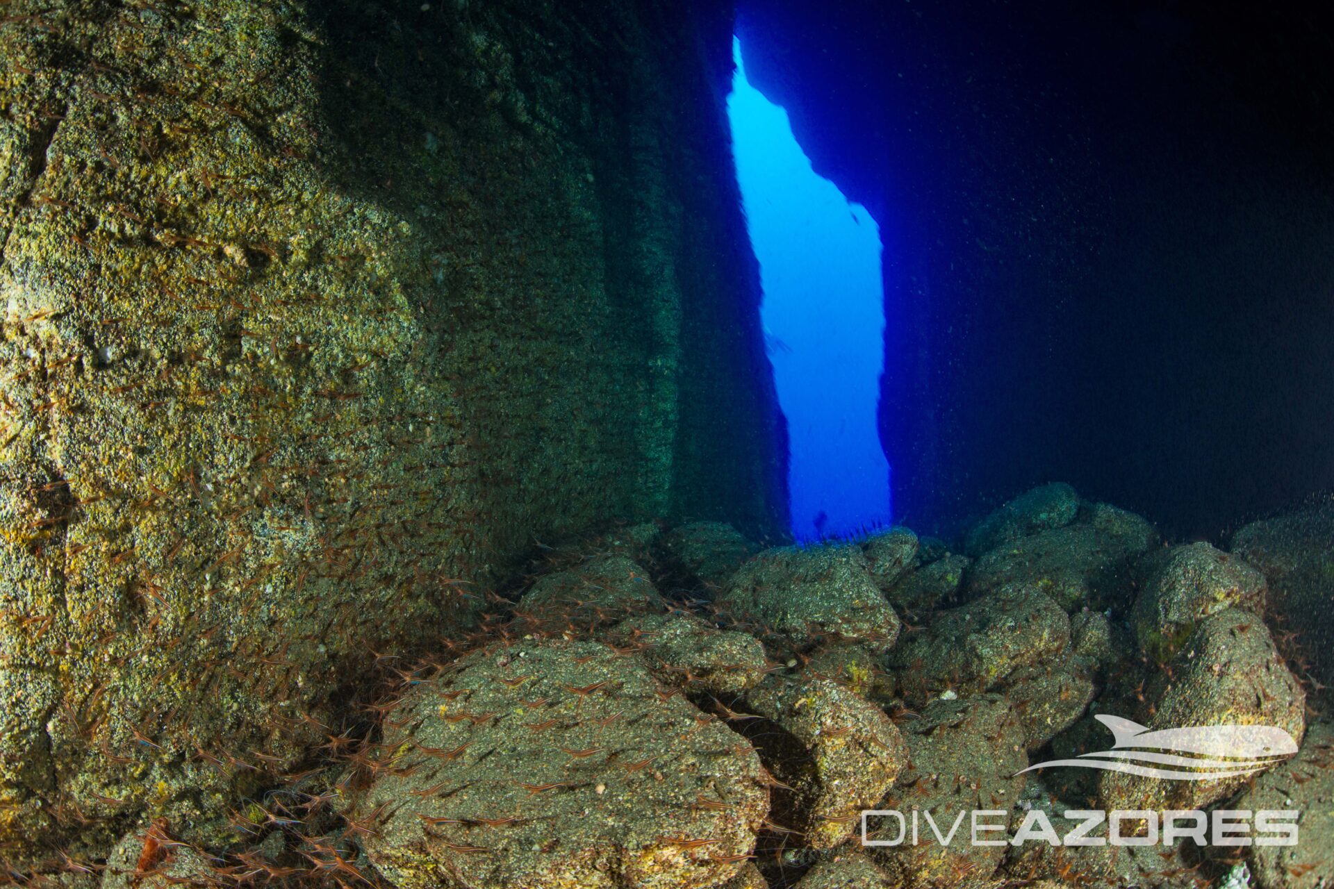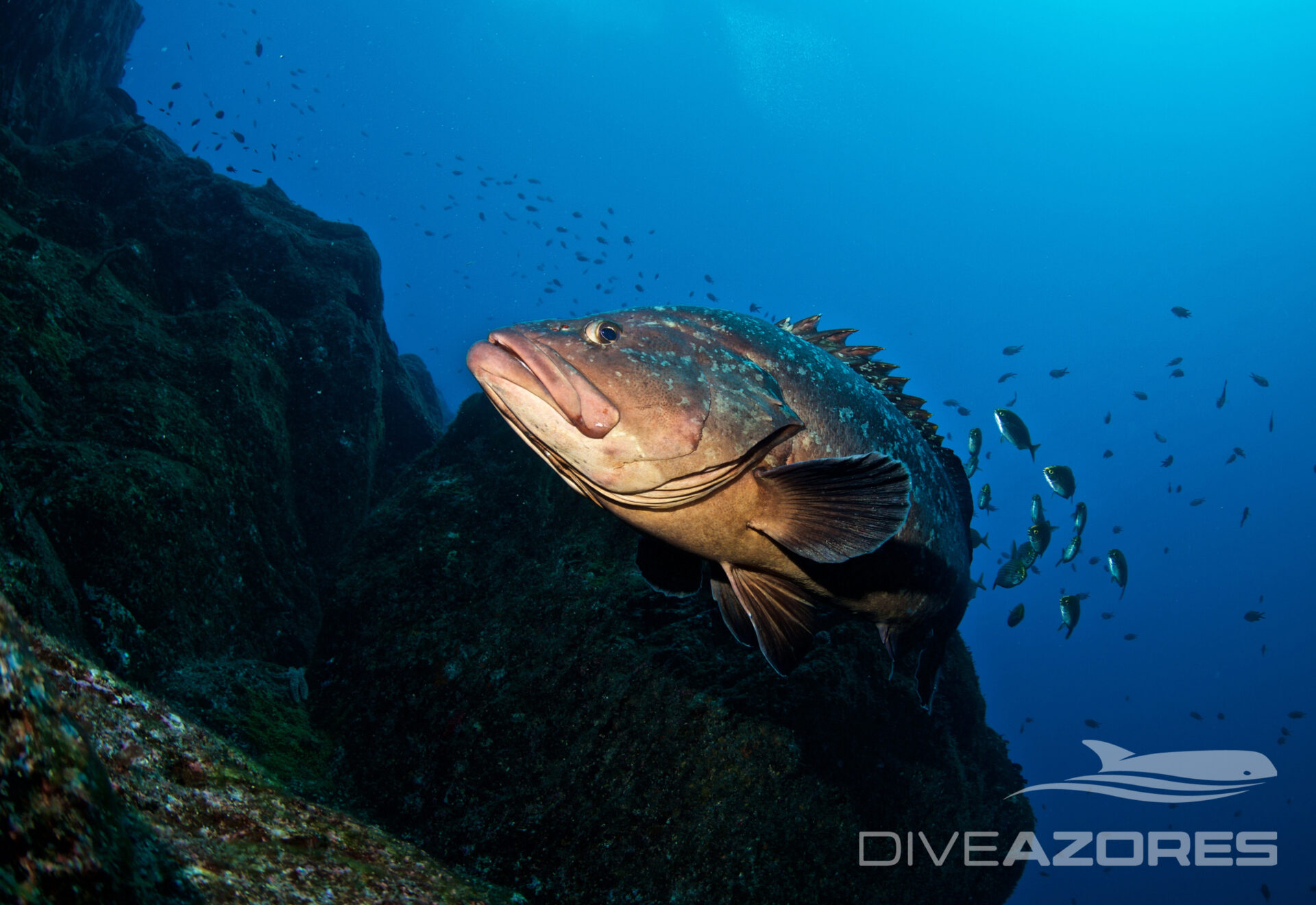 Diving the Faial–Pico Channel means exploring a dynamic stretch of Atlantic water shaped by strong tidal flow between the two islands, creating exciting drift dives along volcanic ridges, rocky plateaus, and steep drop-offs. The currents bring nutrient-rich water that attracts dense schools of fish, large groupers, barracuda, and regular pelagic action, giving these dives a true blue-water feel while still staying close to dramatic volcanic reef structures. Every channel dive is different, energetic, and alive, making it a highlight for divers who enjoy movement, big scenery, and the sense of diving in the heart of the Azores.