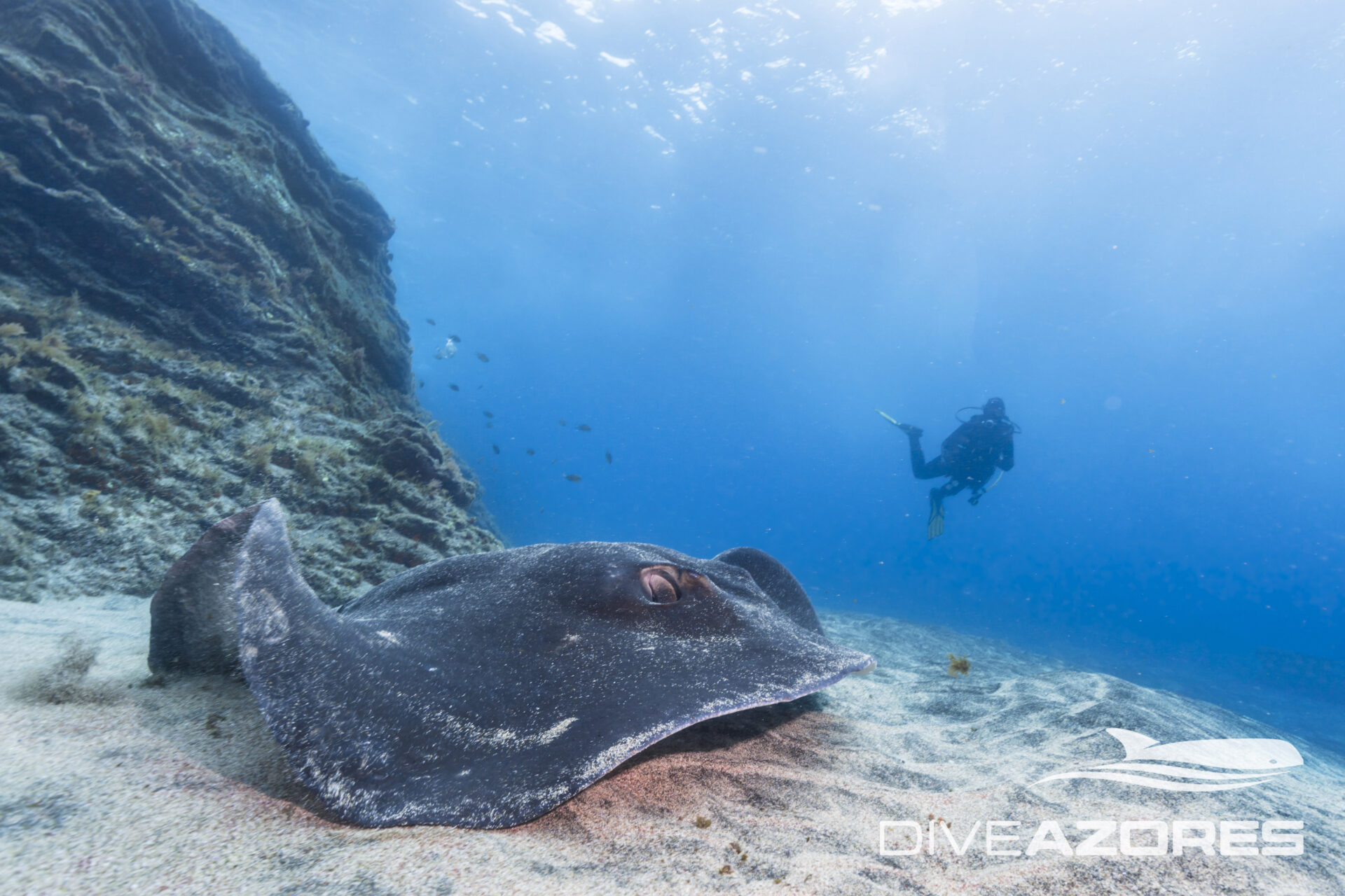 Offshore seamounts and banks rise from the deep Atlantic like underwater mountains, creating some of the most spectacular and wild dives in the Azores. These submerged volcanic peaks concentrate currents and life, resulting in crystal-clear water, dramatic drop-offs, and constant pelagic action, from swirling schools of fish to encounters with rays, sharks, and other open-ocean giants. Diving these remote sites feels like being suspended in the blue, with the seamount below and the deep ocean all around, offering a powerful sense of scale, energy, and true expedition-style diving.