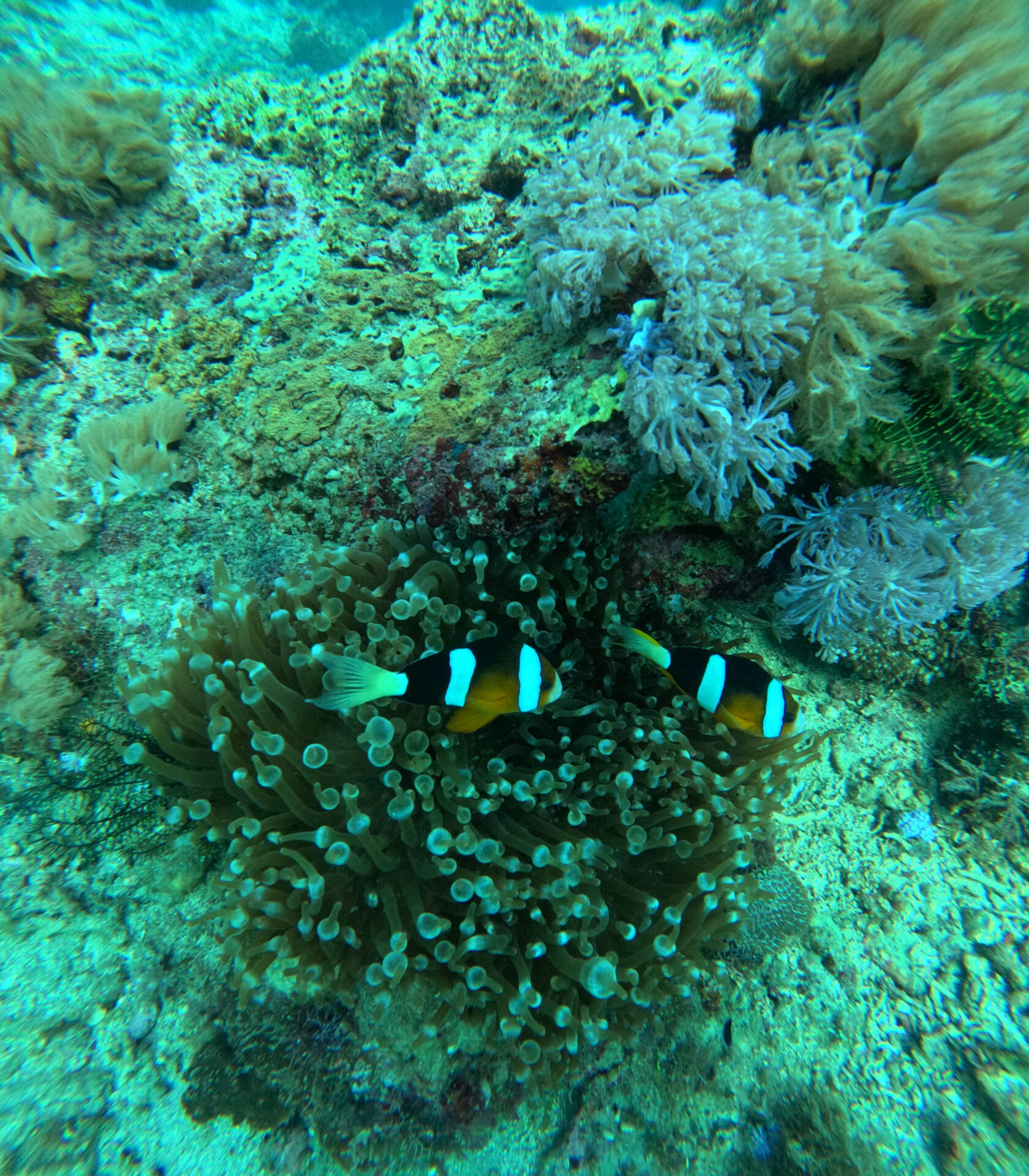 Caban Cove: Sheltered and shallow (max ~15m), with sandy bottoms dotted by coral bommies hosting gobies and devilfish. Calm and picturesque.