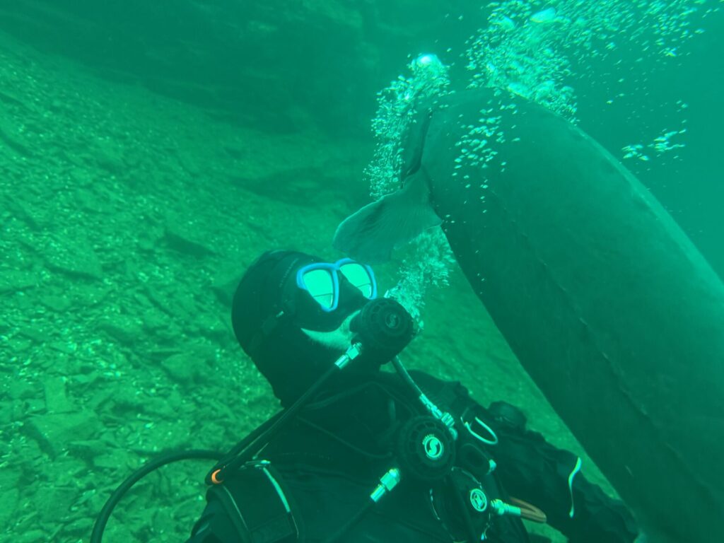 The group was also split between dry suit divers and wetsuit divers, each finding their own comfort zone in the fresh quarry water. The variety didn’t just add color—it made for great conversations, tips, and shared learning between dives.